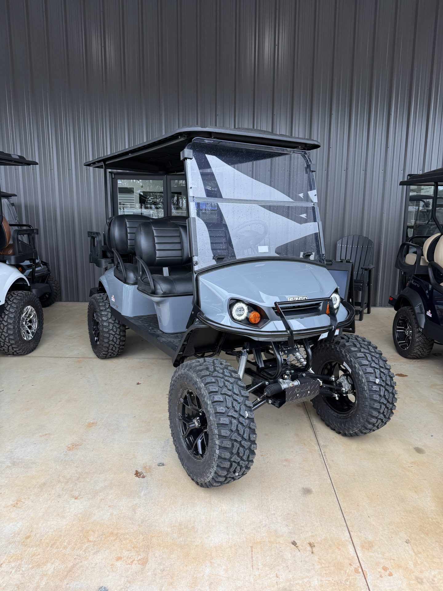 TURN HEADS while enjoying the ultimate smooth ride of the E-Z-GO Express 6 with a 8″, gas shock, long travel lift by AllSports and 28″ AT Tires!!